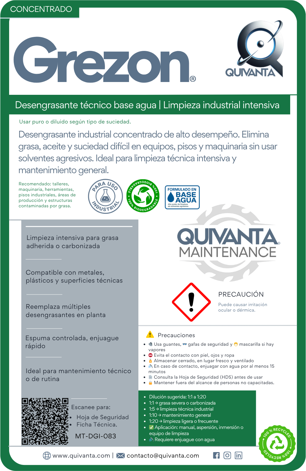 Desengrasantes, limpiadores y soluciones técnicas para la operación continua de equipos y procesos críticos.